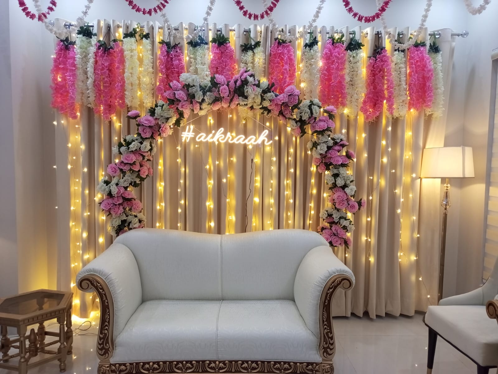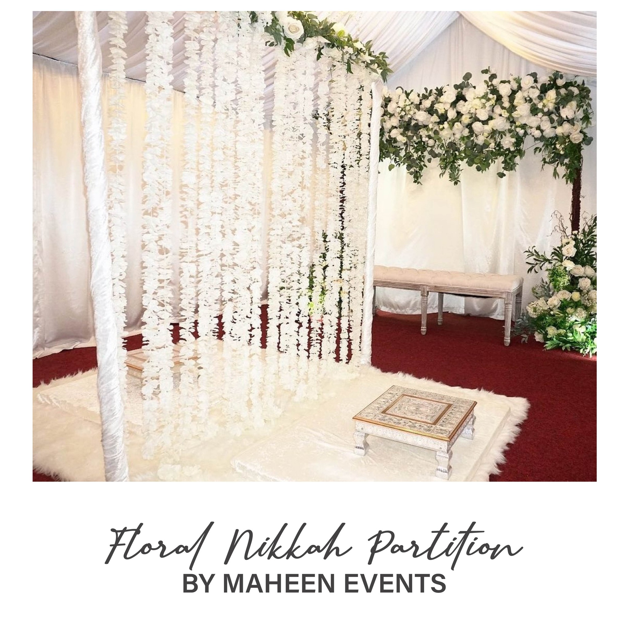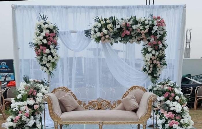 Soft, serene, and spiritual setups with floral stages, white drapes, and Quranic calligraphy to make your Nikkah memorable